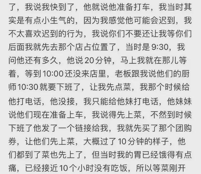 朋友组局庆生,她下班后奔波两个多小时,在餐厅空着肚子等待了40分钟,饿到胃痛。