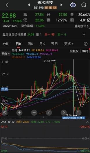 而巧合的是,当日善水科技股价大跌。善水科技开盘即全天最高点,随后开启震荡下跌模式,并于午后触及跌停板,最终收跌17.04%,成为全市场跌幅第二大的个股。而在同一天,同行业(二级行业)上涨0.83%,全市场也有超4000只个股上涨。